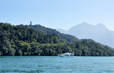 遠處隱約可見的慈恩塔,它是蔣公于1971年為了紀念母親所建,仿遼宋古塔式樣八角寶塔。該塔建在海拔955米的青龍山頂上,塔高9層、高約45米,塔頂正好是海拔1000米。慈恩塔是日月潭景區(qū)的高點,站在塔頂,不僅可以看到日月潭拉魯島、玄奘寺與慈恩塔皆同在一條中軸線上,還可將日月潭美景盡收眼底。因為時間關(guān)系我們沒有到訪參觀,有唏噓遺憾,