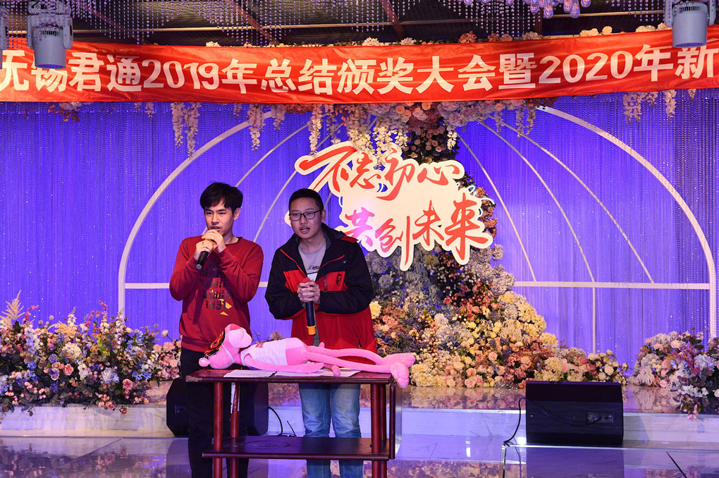 看完激動(dòng)人心的頒獎(jiǎng)盛典后,大家都想一睹期待已久的君通杯春節(jié)聯(lián)歡晚會(huì),伴隨著恢宏大氣、攝人心魄的新年賀歲音樂四位帥氣靚麗的主持人星光閃耀地登上君通春晚舞臺(tái):